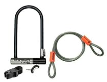 * Versatile lock package containing U-lock and a braided steel flex * Bicycle security for moderate to high crime areas, with a standard length shackle * 13 mm hardened Kryptonium steel shackle * Patented deadbolt locking mechanism for extensive holding power * High security disc style cylinder * Reinforced sleeve over crossbar and cylinder provides enhanced security protection * Reinforced internal housing increases resistance to twisting and leverage type attacks * Offset key location and overhead cam locking mechanism resists leverage attacks * Patented, easy to use, high security Bent Foot design * Anti-Rattle bumpers keeps the shackle snug against the crossbar and prevent unnecessary noise * 2 keys * EZ-Mount bracket included * Rotating dustcover over cylinder protects from dirt & grime * Vinyl coated and weatherproof * Kryptoflex braided steel cable for locking up wheels and saddles and to act as a secondary deterrent * U-lock dimensions: 10.2x 22.9 cm